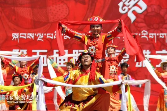 國家旅游地理 西藏阿里8月3日訊 8月3日,當(dāng)?shù)厝罕娫陂_幕式上表演富有民族特色的歌舞《美麗的阿里》。當(dāng)日,西藏阿里地區(qū)第五屆象雄文化旅游節(jié)在獅泉河文化廣場開幕。此次文化旅游節(jié)將舉辦阿里象雄文化研討會、旅游紀(jì)念品展覽、攝影展等十余項(xiàng)活動?! ? 新華社發(fā)(蔣先平 攝)
