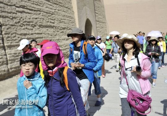 國(guó)家旅游地理 甘肅酒泉8月10日訊 8月10日,游客在嘉峪關(guān)城門前參觀。近一個(gè)月來(lái),我國(guó)許多地區(qū)持續(xù)高溫天氣,西北地區(qū)成為眾多游客逃離酷暑、納涼觀光的好去處。據(jù)了解,目前甘肅省內(nèi)各大旅行社絲綢之路旅游線路預(yù)訂火爆。敦煌莫高窟、嘉峪關(guān)等多個(gè)景區(qū)游客爆滿,賓館甚至出現(xiàn)一房難求的現(xiàn)象,旅游部門提醒有出游需求的游客盡量提早預(yù)訂,保證順利出游。 /新華社記者 陳斌 攝