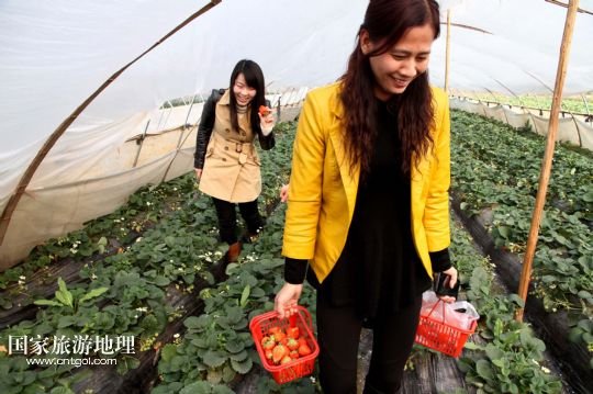 4月28日,游客在江西省靖安縣雙溪鎮(zhèn)河北村采摘草莓。