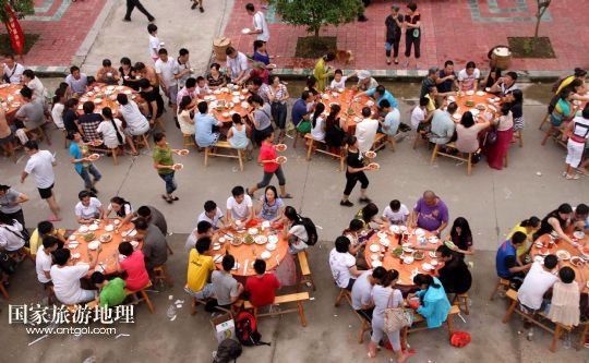 4月27日,參加農(nóng)宿游的游客在江西省靖安縣高湖鎮(zhèn)西頭村吃農(nóng)家飯。