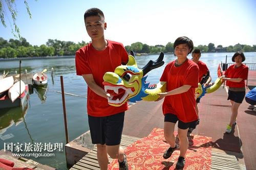 國家旅游地理 北京5月28日訊 5月28日,龍舟賽開始前,工作人員按照傳統(tǒng)儀式將“神龍”請上碼頭點睛。當日,北京什剎海街道舉辦迎端午節(jié)系列活動,通過賽龍舟和纏繒子、吆喝表演等豐富多彩的民俗文化活動,讓端午節(jié)的傳統(tǒng)習俗回歸百姓生活,彰顯什剎海地區(qū)民俗文化的特色。新華社記者 李鑫 攝