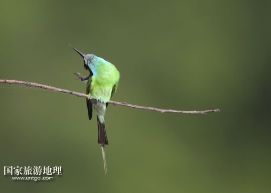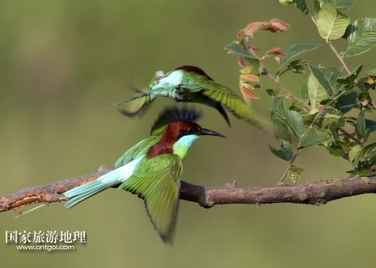 國家旅游地理 江西九江6月14日訊 6月14日,藍(lán)喉蜂虎在鄱陽湖畔的樹枝上休憩。進(jìn)入夏季以來,位于我國第一大淡水湖江西鄱陽湖畔的九江市廬山區(qū)姑塘鎮(zhèn)迎來了眾多美麗的小鳥藍(lán)喉蜂虎。