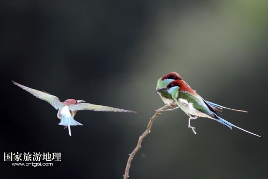 江西九江:美麗如畫的藍(lán)喉蜂虎(鳥)自由棲息(圖)